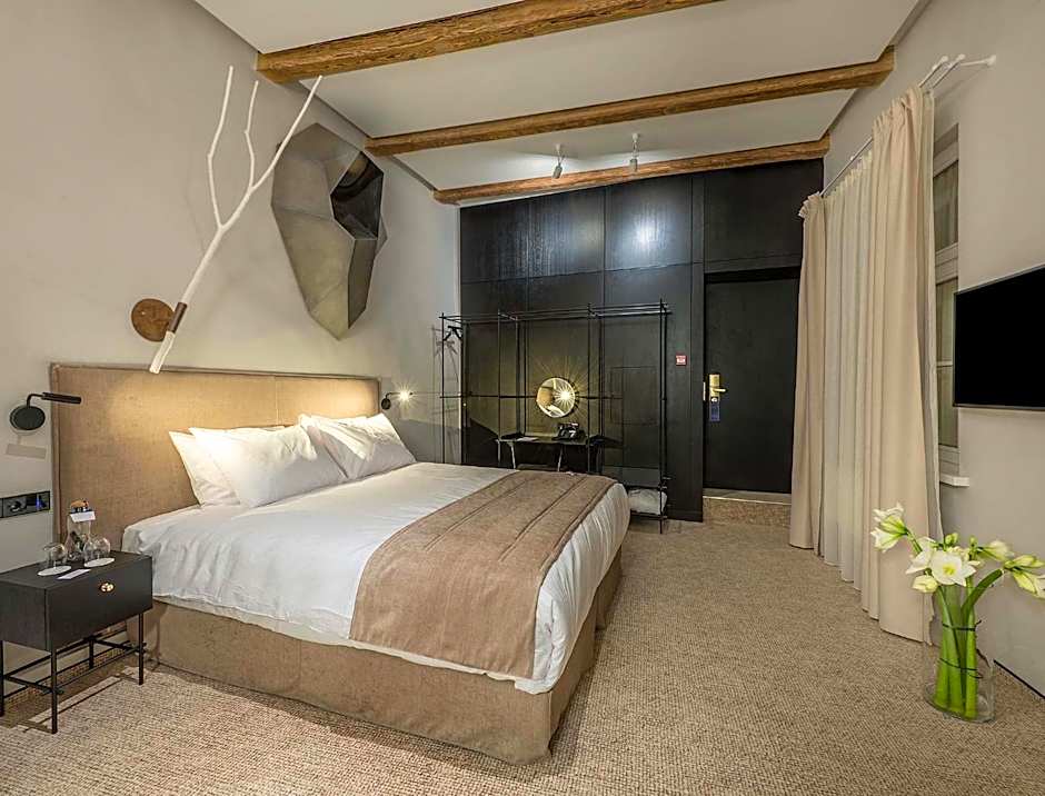 This Standard Room has a classic floor plan and comes with a queen size bed and individual art installation. Room features heated bathroom floor, air-conditioning, WiFi, flat-screen TV with satellite channels and a Chemex coffee maker.